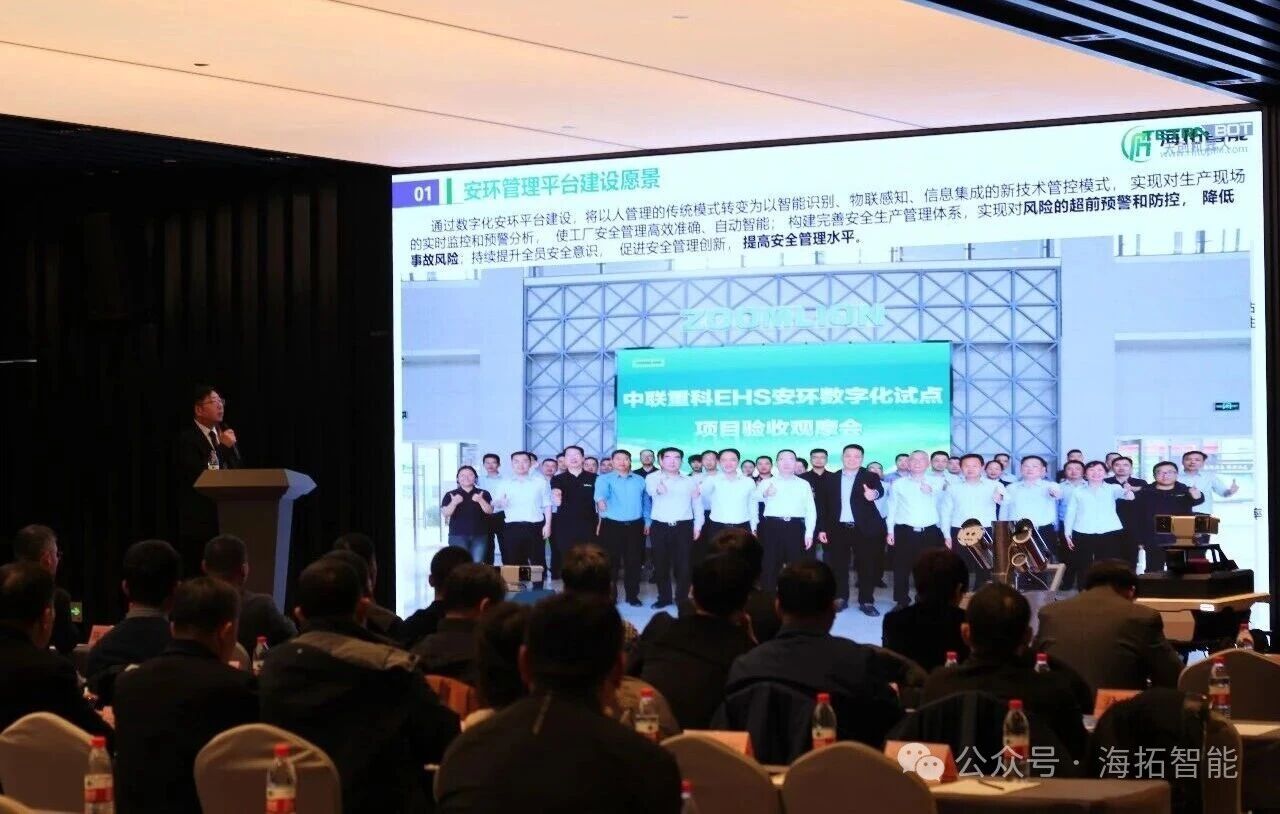海拓的技术已经在中联重科、山东港口集团、多氟多新材料等300多家知名企业落地生根,打造了多个行业标杆案例,会议现场交付经理马忠志通过视频分享方式给与会者做了分享。