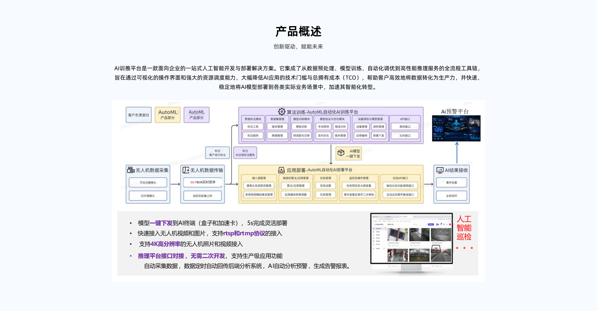 资源统一调度与监控:对底层计算资源(GPU/NPU)进行池化管理和智能调度,最大化资源利用率,并实时监控硬件健康状况。